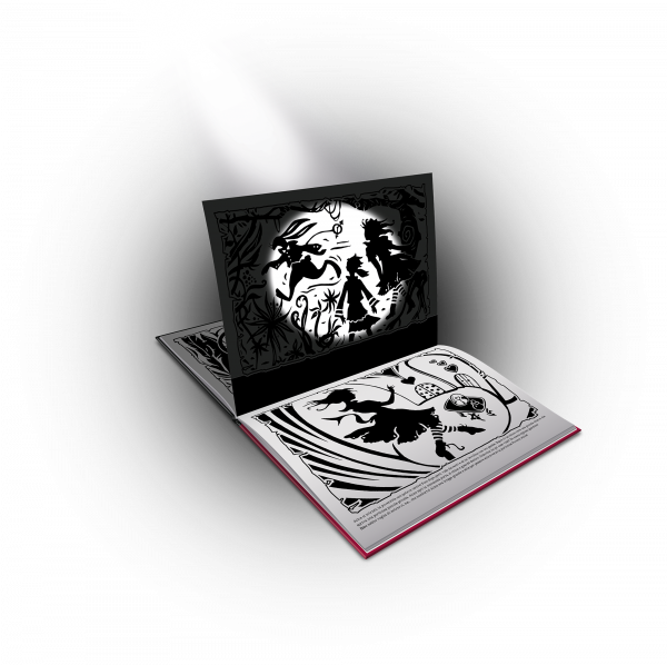 Un libro di grande fascino, da leggere al buio con l’aiuto della torcia inclusa nella confezione, che racconta, per immagini, l’avvincente storia di Alice nel paese delle meraviglie. La potenza espressiva delle illustrazioni, realizzate in nero come silhouettes, rende la narrazione particolarmente suggestiva per i piccoli lettori. Il libro è contenuto in un’elegante confezione a cofanetto che include anche la torcia con cui leggere la storia.