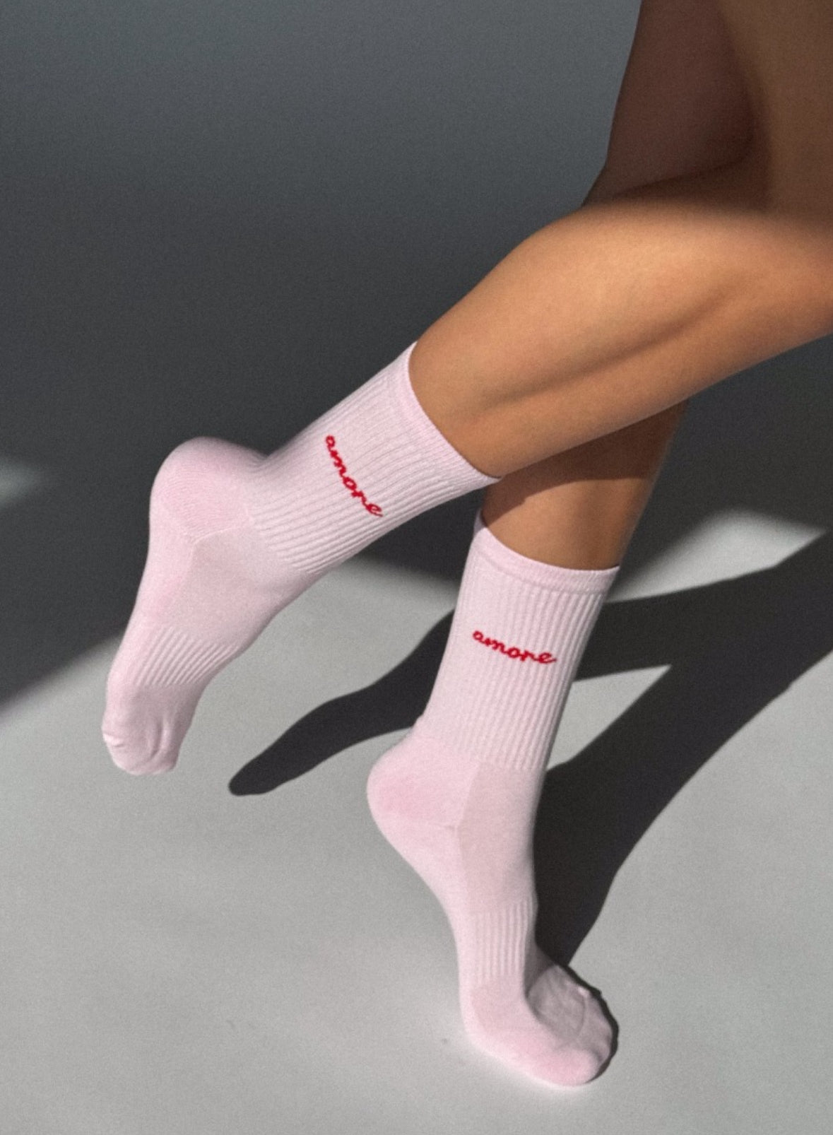 Calzini con scritta "Amore" intrecciata in Portogallo, extra rinforzata sotto il piede, senza fastidiose cuciture e con strisce retrò sulla parte superiore del polsino.