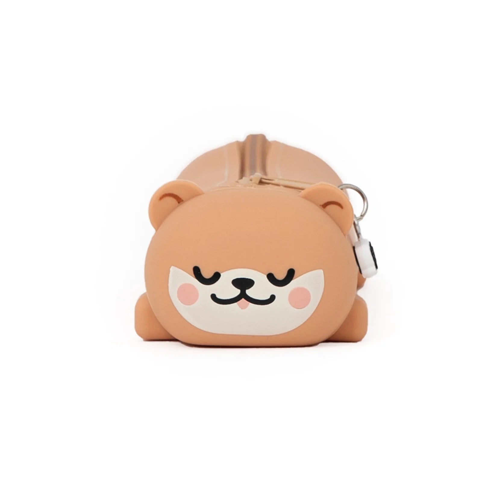 Astuccio scolastico con chiusura a cerniera e a forma di lontra, realizzato in silicone.