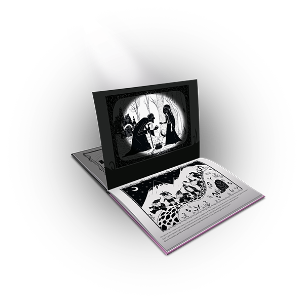 Un libro di grande fascino, da leggere al buio con l’aiuto della torcia inclusa nella confezione, che racconta, per immagini, l’avvincente storia di Biancaneve e i Sette Nani. La potenza espressiva delle illustrazioni, realizzate in nero come silhouettes, rende la narrazione particolarmente suggestiva per i piccoli lettori. Il libro è contenuto in un’elegante confezione a cofanetto che include anche la torcia con cui leggere la storia.