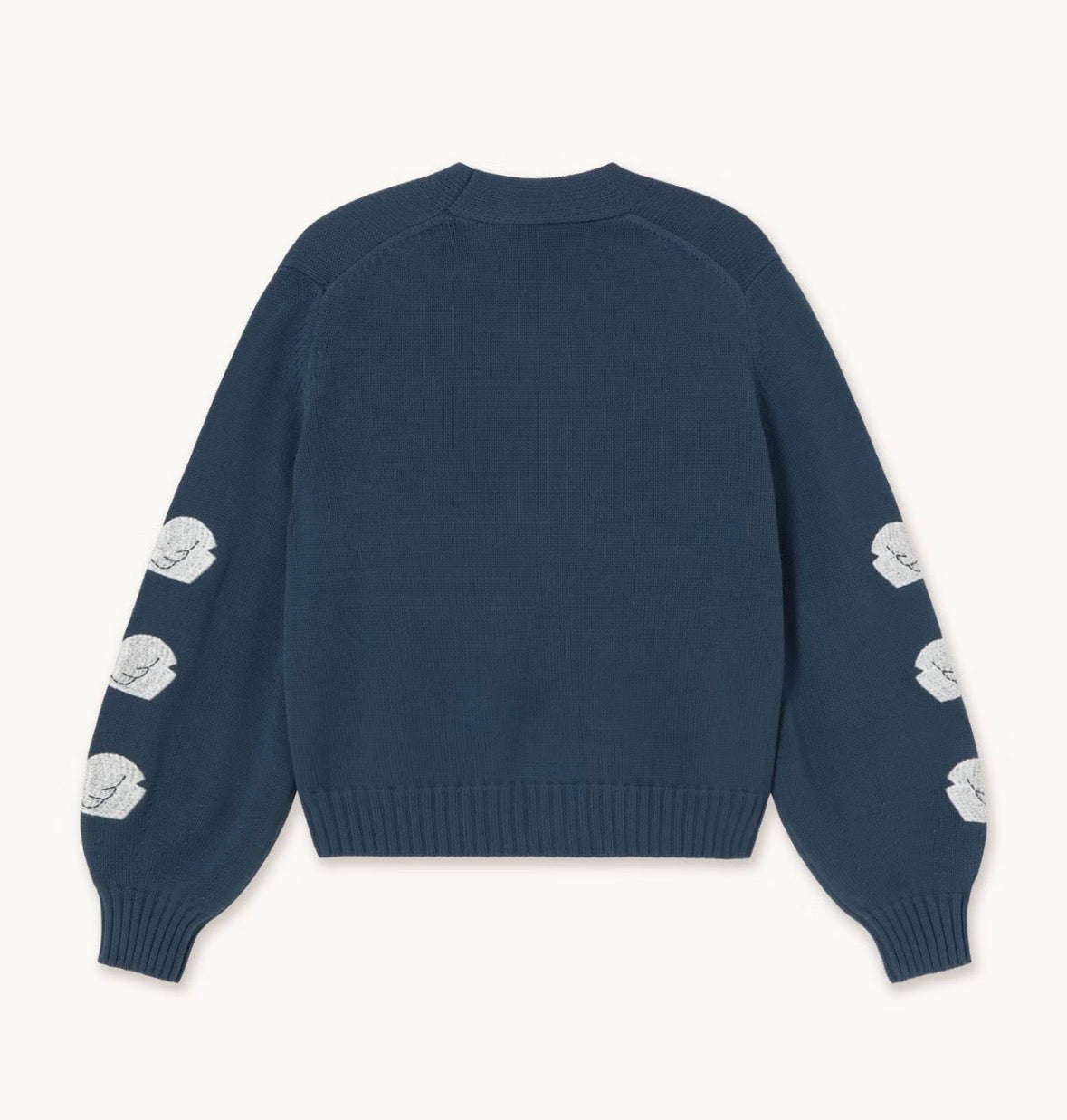 Lavorato a maglia in puro cotone, questo cardigan ha una scollatura a V pulita e un'apertura frontale abbottonata. Completamente modellato con una silhouette aerodinamica, è rifinito con cigni ricamati sulle maniche. Viene fornito in una morbida base in pietra per un aspetto sobrio.