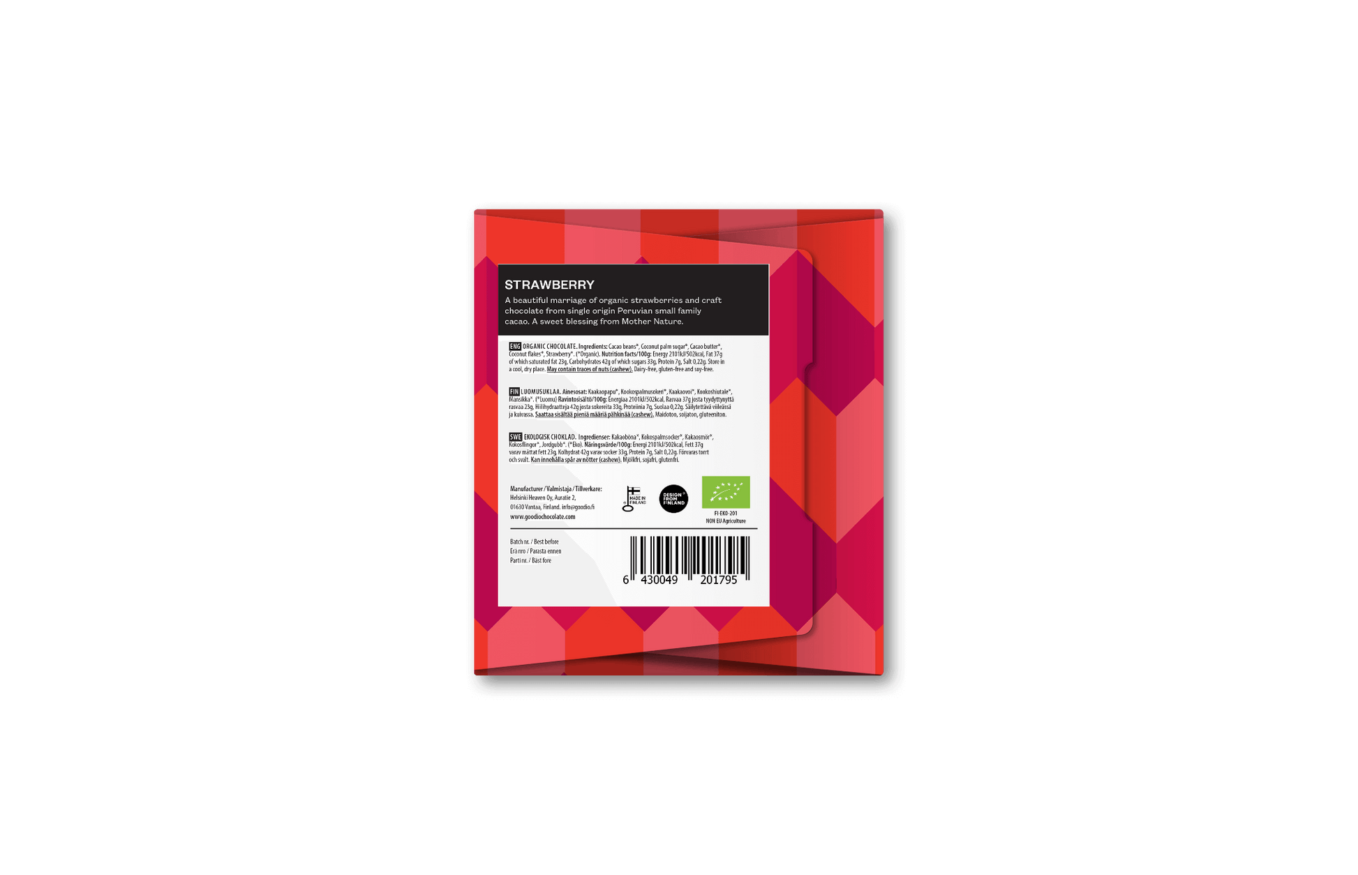 Un bellissimo connubio di fragole biologiche e cioccolato artigianale da cacao di piccole famiglie peruviane a origine unica.
