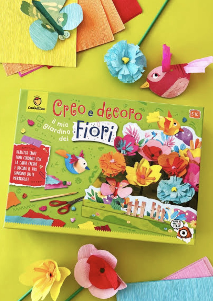 - Un gioco creativo, davvero originale, con cui creare e decorare un fantastico giardino con la carta crespa
