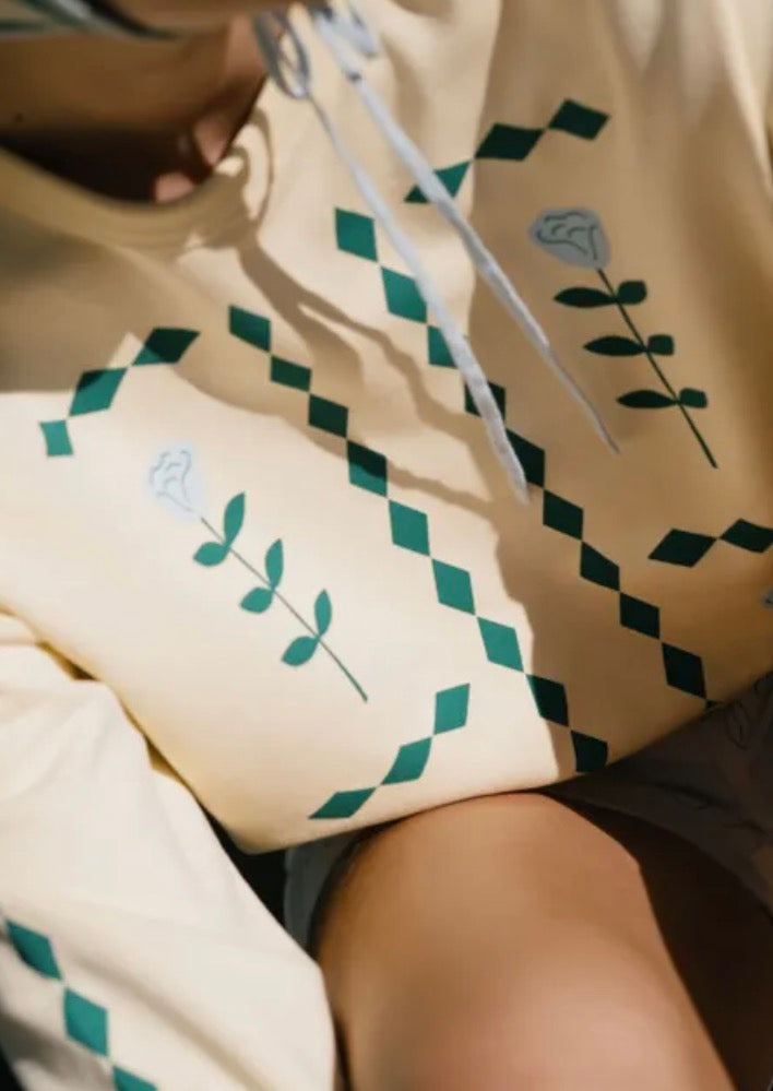 Realizzata in puro cotone French terry, questa felpa dal taglio rilassato presenta una stampa a fiori e diamanti sul davanti e sulle maniche. Presenta spalle leggermente scese, scollo e orli a coste.