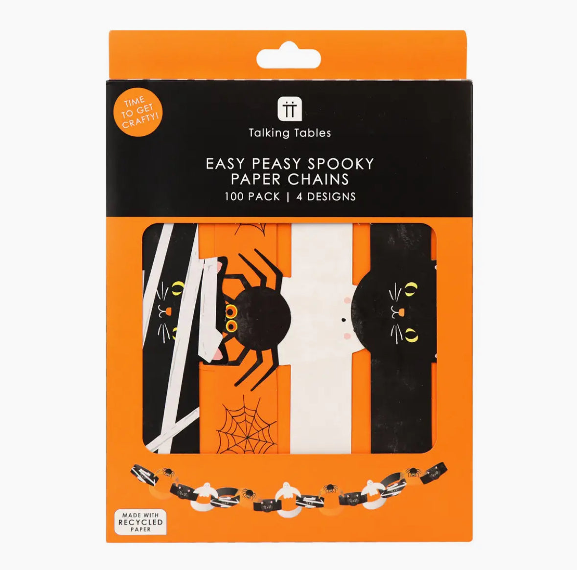 Rendi facile e divertente la decorazione spettrale con questo pacco da 100 di Catene di Carta Calamity Coco. Con stampe giocose di Halloween e strisce pre-tagliate, basta arricciare e incollare per creare 6,5 metri di ghirlanda spaventosamente festosa. Perfetto per feste, aule o divertimento creativo a casa. Dimensione: 6,5m Info Pacco: Confezione da 100 Materiale: Carta
