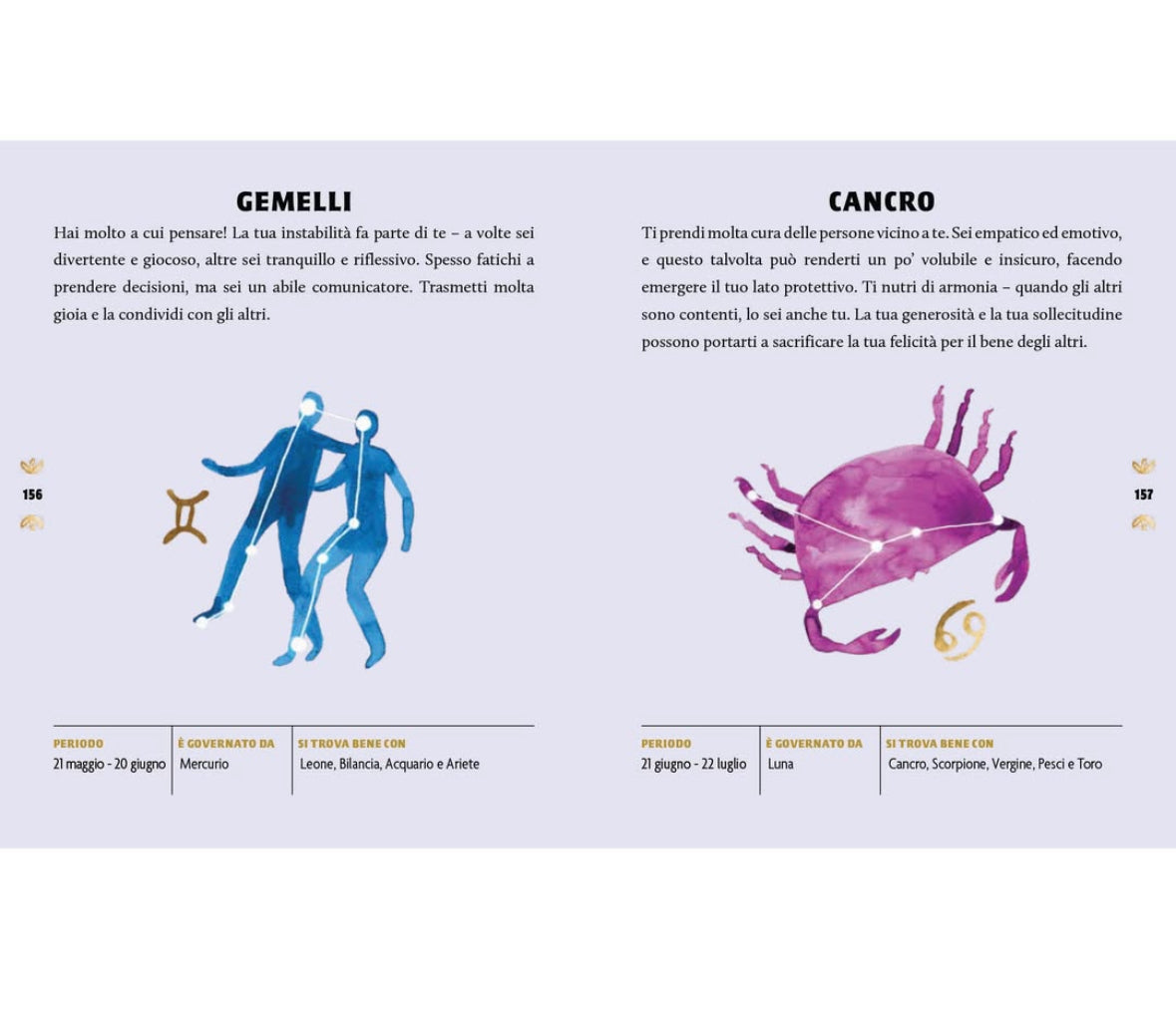 Scoprirai il significato e le proprietà curative dei cristalli magici più comuni, le basi dell’astrologia e dei segni zodiacali, il significato degli Arcani Maggiori e Minori dei tarocchi, come leggere la mano e le storie delle fate più affascinanti del mondo