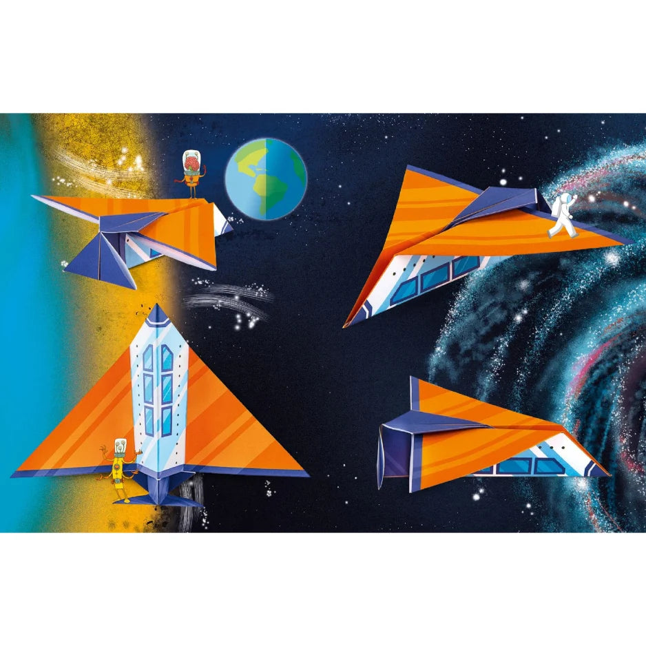 - Un cofanetto grande formato, contenente un libro educativo e stimolante, con 12 modelli di origami facili e divertenti per andare alla scoperta dello spazio