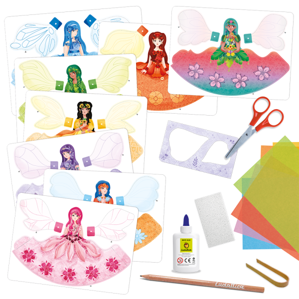 Entra nel magico atelier e divertiti a creare e decorare 8 splendide fate! Nella scatola trovi tutto l'occorrente per sperimentare la speciale tecnica di stampa con la carta velina, per creare giochi di colore e trasparenze davvero originali! In più, tutot il necessario per ritagliare e incollare, tanti petali di carta velina multicolore, creando abiti unici e fatati. Un gioco creativo che stimola manualità e fantasia!
