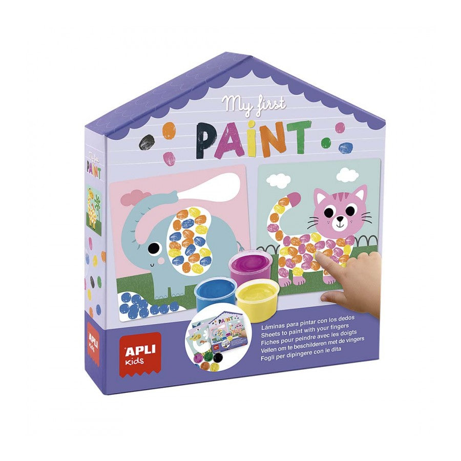 Gioco di pittura della collezione My First a tema animali. Il gioco consiste nel colorare con le dita le aree indicate nei disegni. Include 6 carte a tema animali, 6 barattoli di tempera a dita, 1 libretto con istruzioni ed esempi di come svolgere l'attività. Un prodotto dall'alto valore didattico, perfetto per sviluppare abilità e precisione fin dalla tenera età, nonché per stimolare la motricità fine, lavorando sulla coordinazione occhio-mano, favorendo l'orientamento spaziale e sviluppando la creatività. Consigliato per bambini dai 3 anni in su.