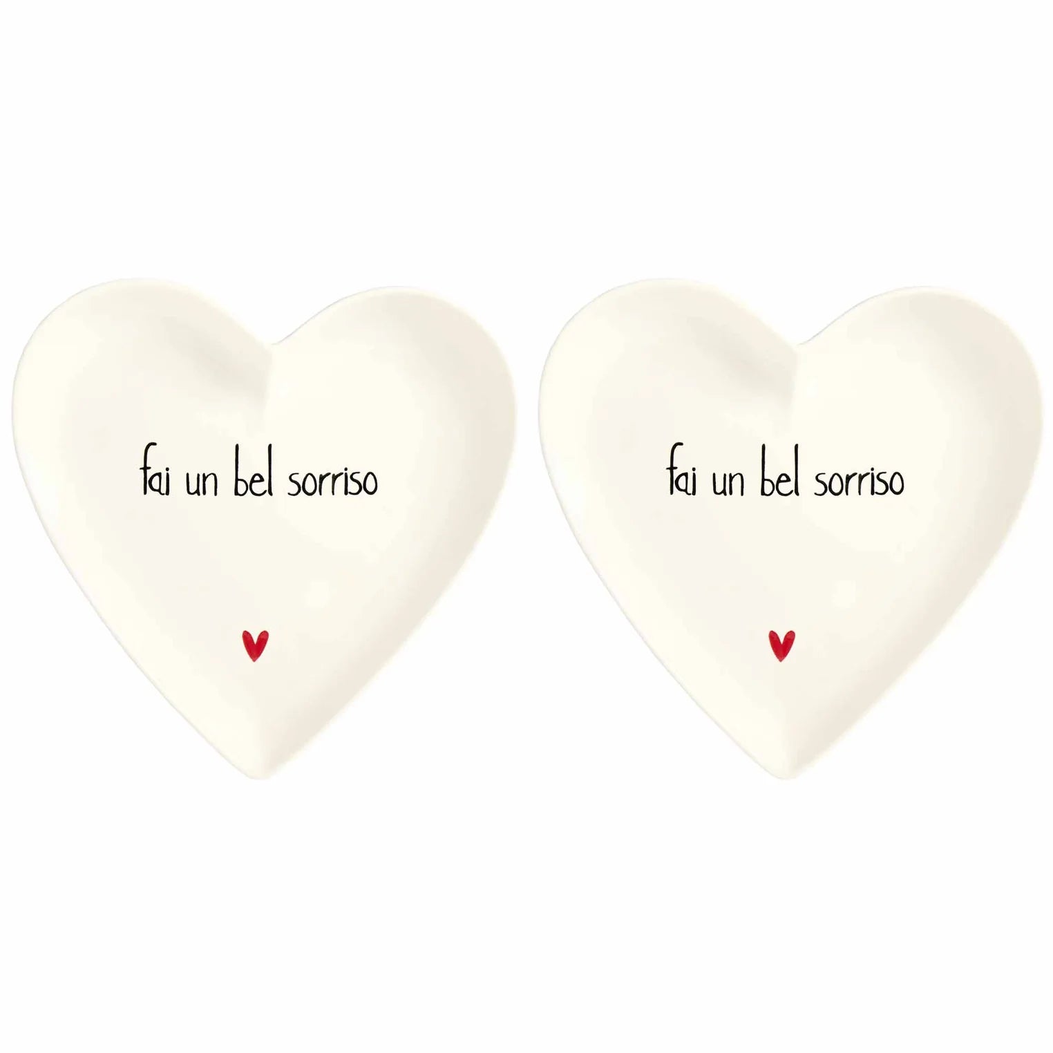 Il set di 2 piatti cuore renderà la tua tavola speciale. Eleganti e minimali, questi piatti sono perfetti per aggiungere un tocco di stile grazie anche alle serigrafie in nero. I piatti cuore sono resistenti e facili da pulire, rendendoli perfetti per servire ogni tua pietanza