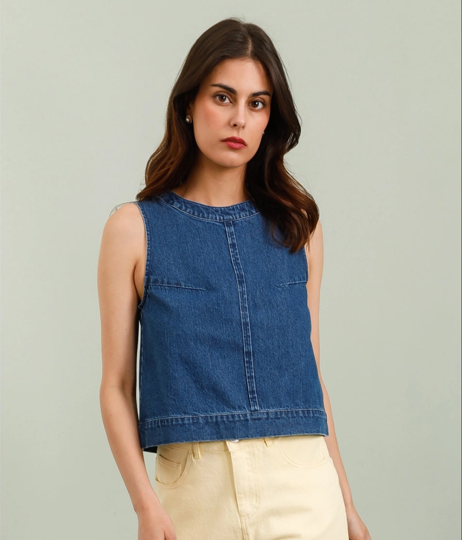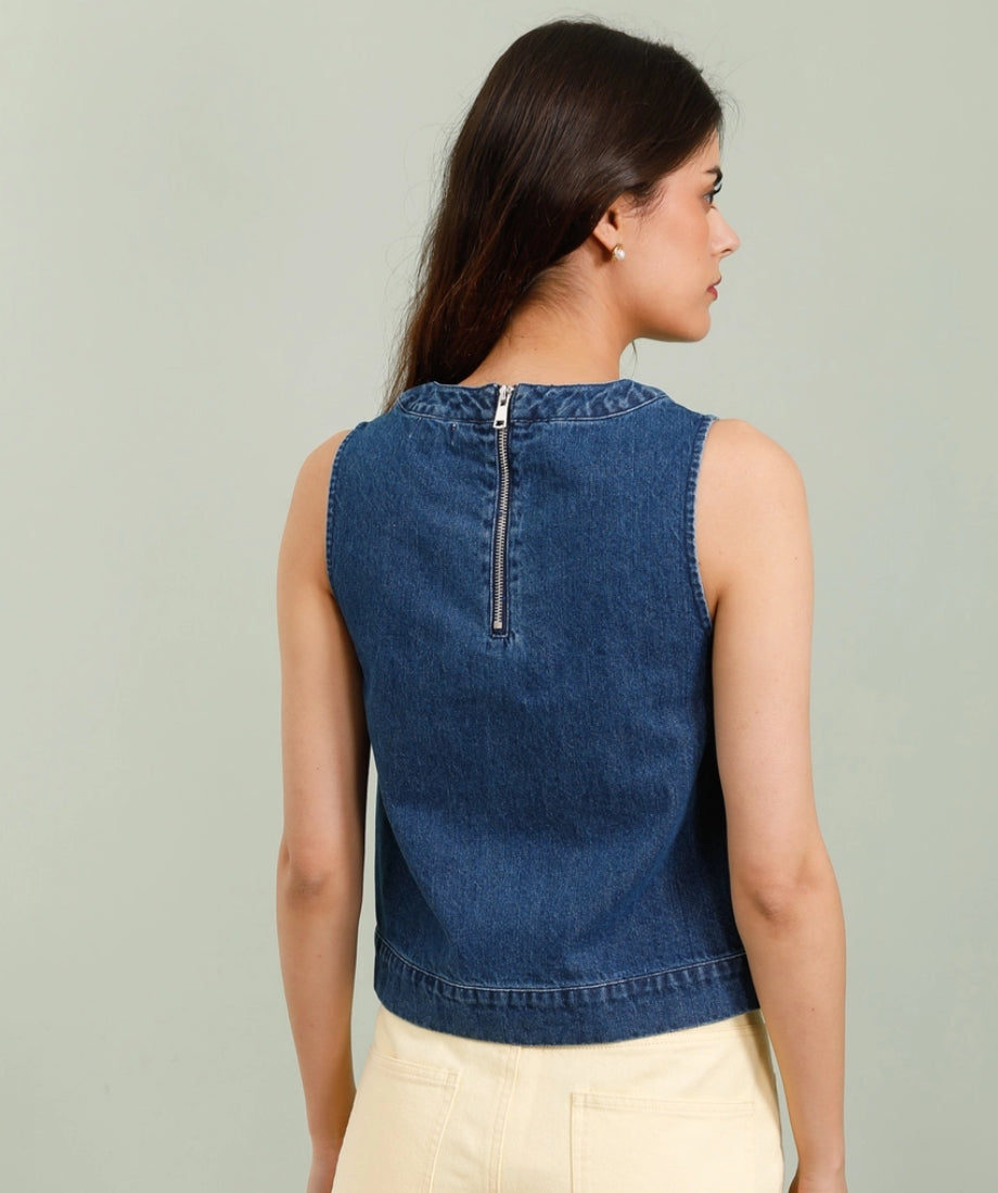 Top senza maniche in denim a taglio dritto Scollo rotondo e chiusura con zip sul retro per un tocco moderno e pratico.